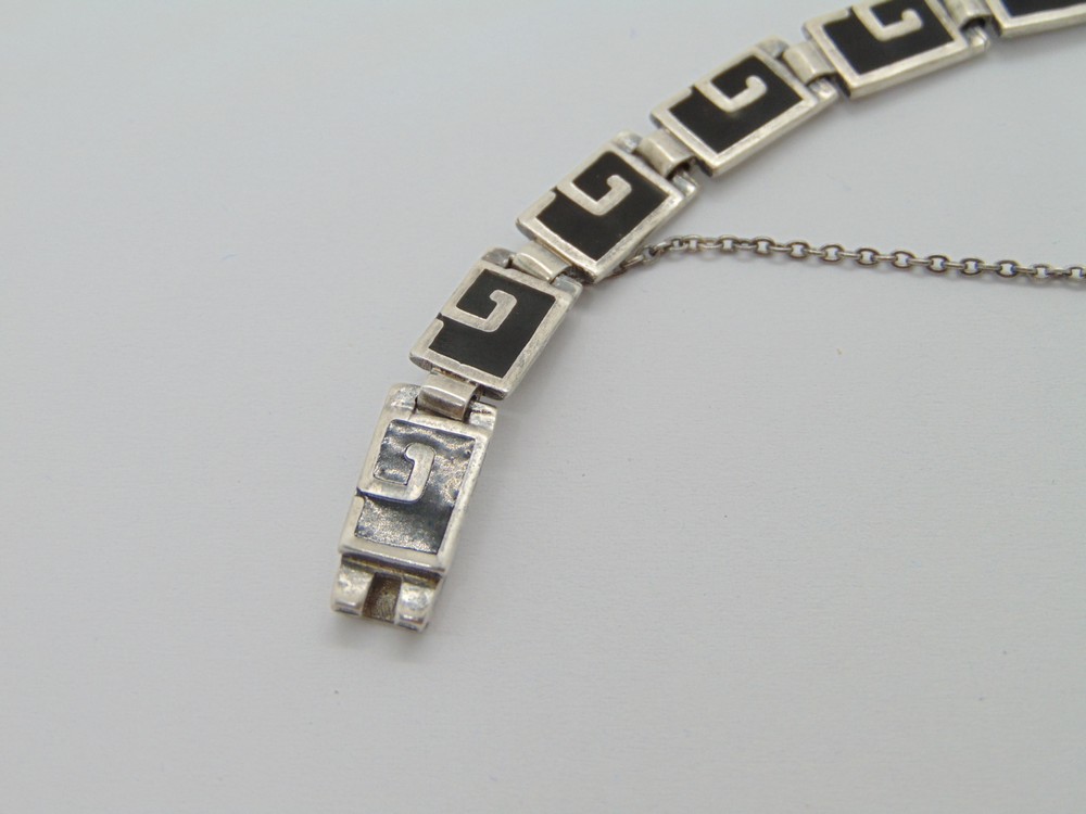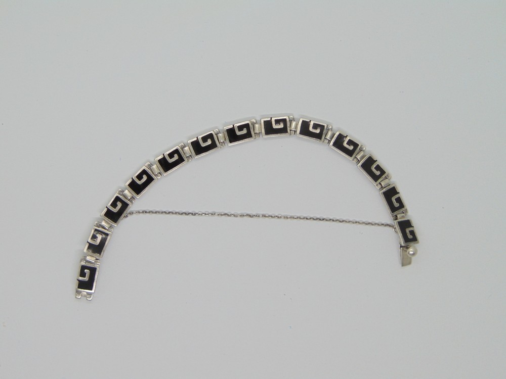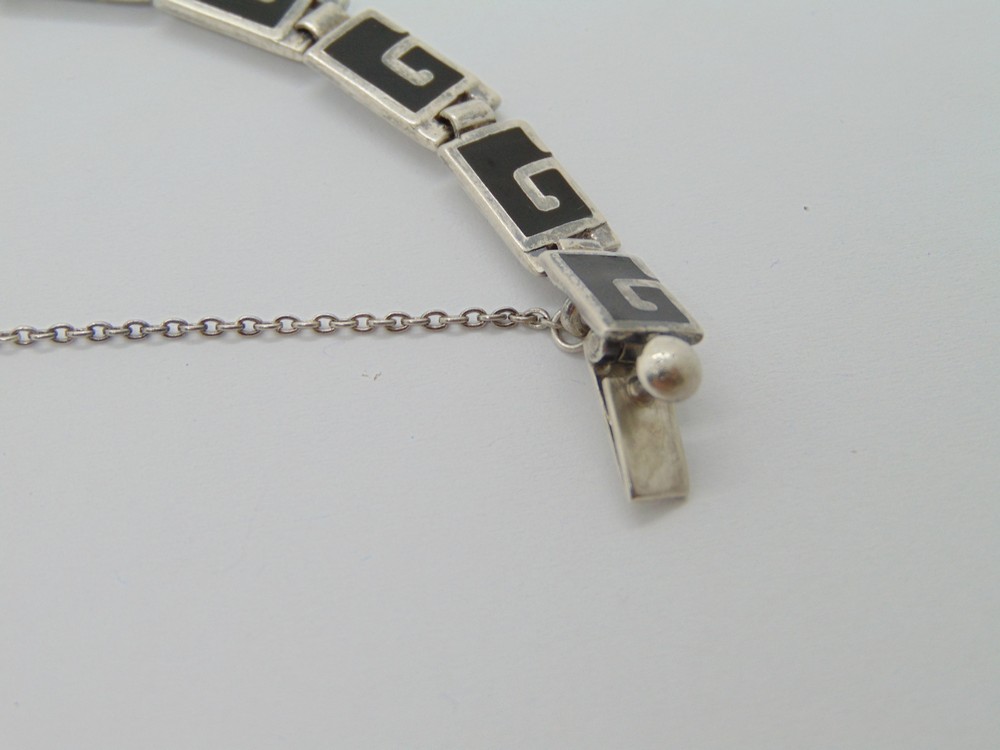 Bratara din argint cu email negru semnata Margot Taxco Mexic