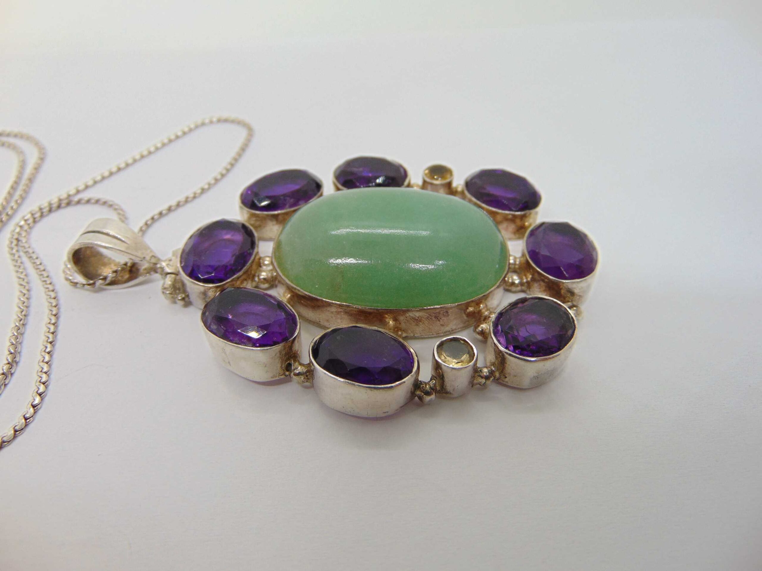 Lant si pandantiv mare din argint cu jad, ametist si citrin